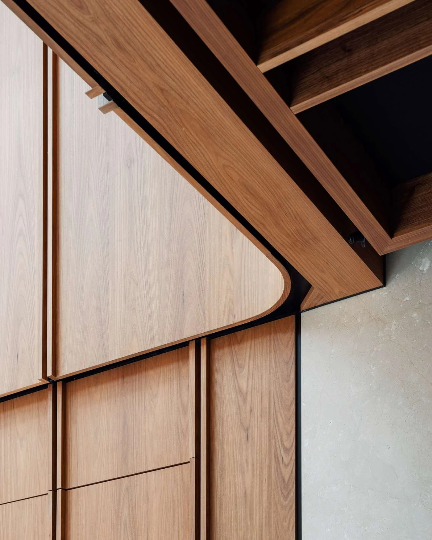 Bilder fra advokatkontoret August Debouzy Law Firm i Paris. Med finér i Amerikansk alm på veggene.